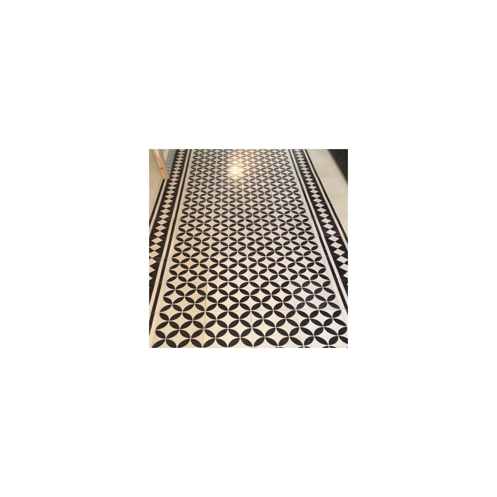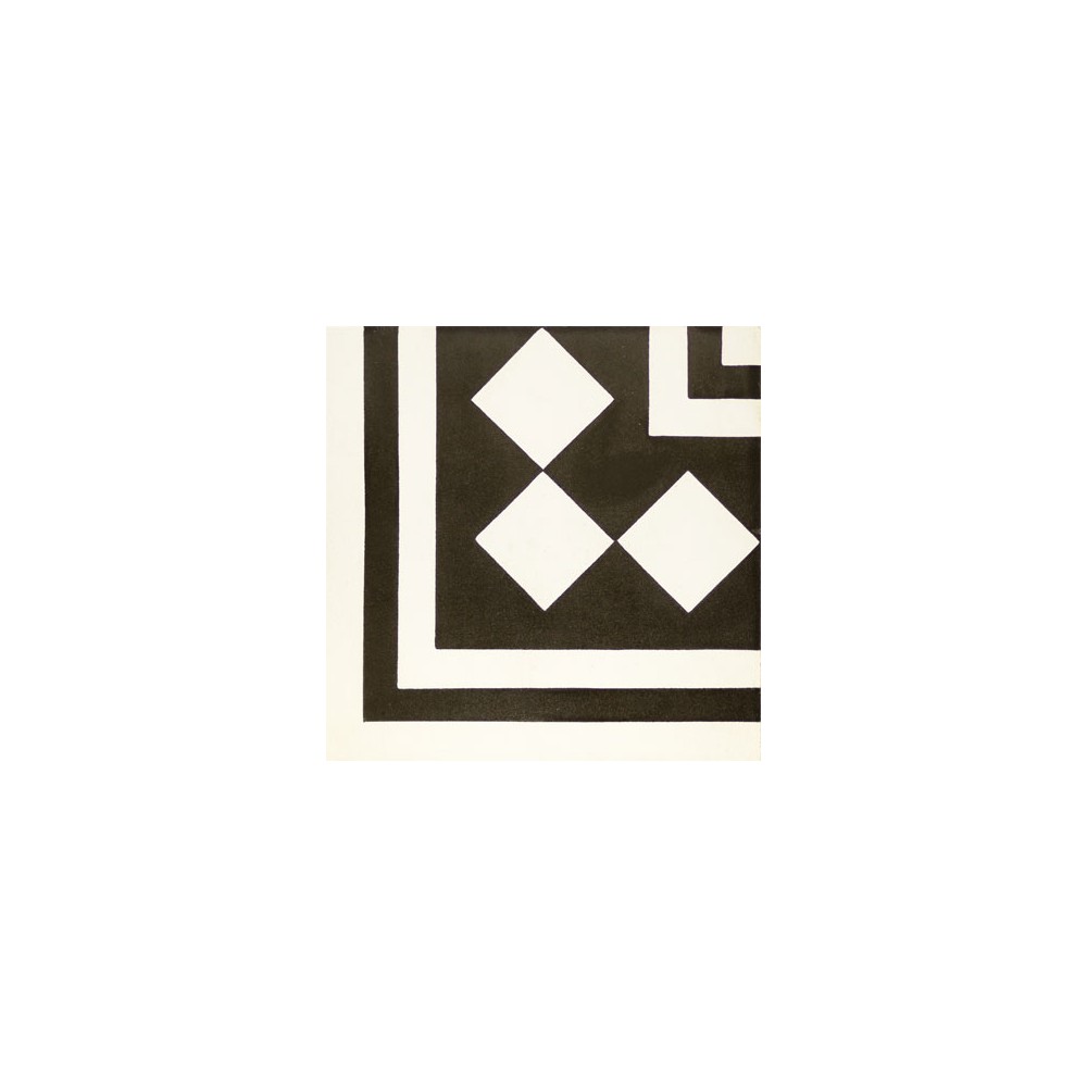 Cenefa hidráulica cuadrada de medida 20x20x1,8cm compuesta por un dibujo geométrico de 2 colores compuesta por rombos y líneas, ideal para rematar suelos a los que se quiere dotar de cierto valor y elegancia. Se puede colocar en suelos y paredes.