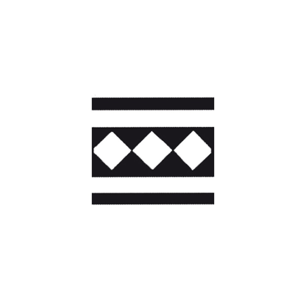 Cenefa hidráulica cuadrada de medida 20x20x1,8cm compuesta por un dibujo geométrico de 2 colores compuesta por rombos y líneas, ideal para rematar suelos a los que se quiere dotar de cierto valor y elegancia. Se puede colocar en suelos y paredes.