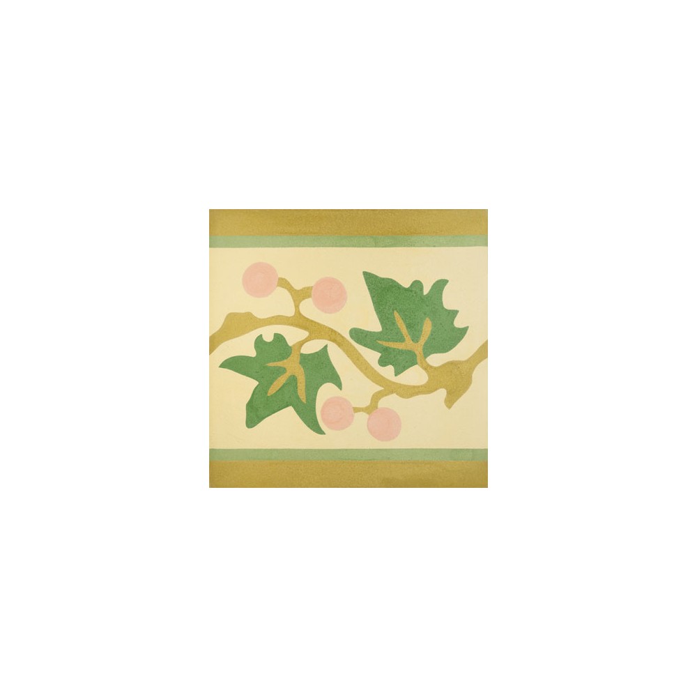 Cenefa hidráulica cuadrada de medida 20x20x1,8cm compuesta por un dibujo floral de 5 colores, ideal para rematar suelos a los que se quiere dotar de cierto valor y elegancia. Se puede colocar en suelos y paredes.