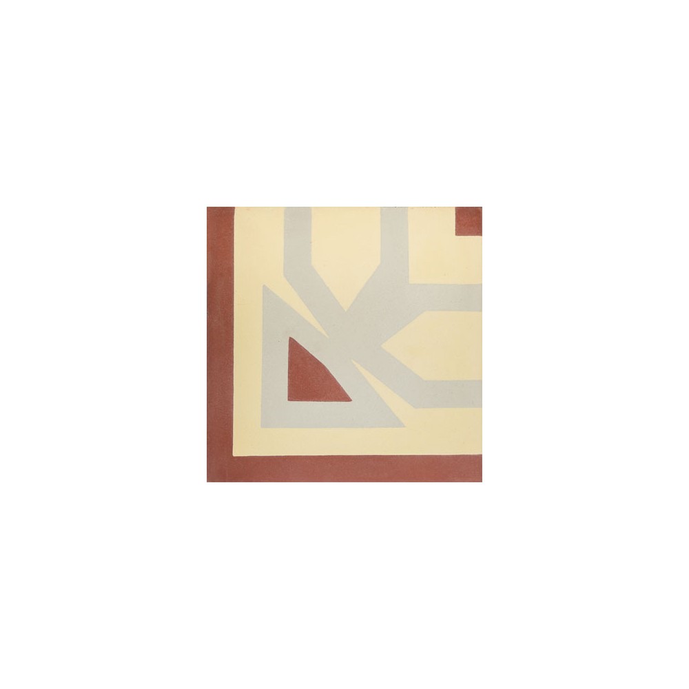 Cenefa hidráulica cuadrada de medida 20x20x1,8cm compuesta por un dibujo geométrico de 3 colores, ideal para rematar suelos a los que se quiere dotar de cierto valor y elegancia. Se puede colocar en suelos y paredes.