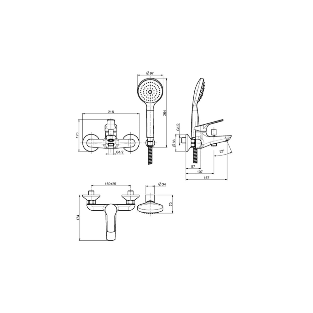 Mezclador Fima Carlo Frattini para bañera con set de ducha Serie 4