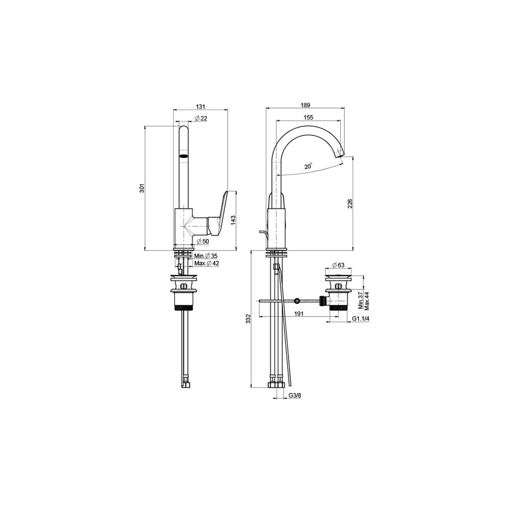 El acabado de este grifo puede ser cromado, blanco mate ó negro mate.