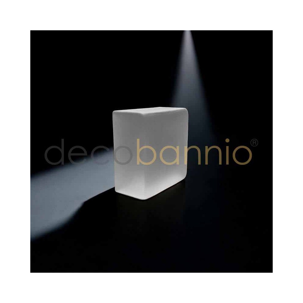 Este bloque de vidrio macizo en acabado satinado neutro, con dimensiones de 10x10x50 cm, tiene un diseño limpio con líneas rectas y esquinas ligeramente redondeadas, lo que le da una apariencia que recuerda a un lingote cuadrado. El bloque es totalmente satinado en todos sus lados, aportando un acabado decorativo y moderno.