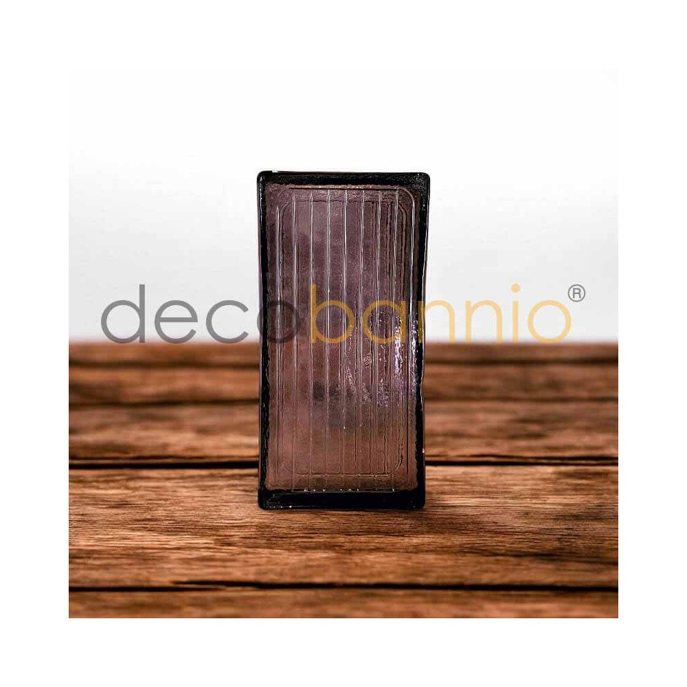 Este bloque de vidrio macizo en un distintivo color prugna, con dimensiones de 20x10x5cm, evoca la apariencia elegante de un lingote. Sus líneas rectas y esquinas suavemente redondeadas le otorgan un diseño robusto pero refinado. En sus dos caras, presenta unas delicadas líneas verticales en relieve, que añaden un toque distintivo y moderno, diferenciándolo de otros modelos en el mercado.