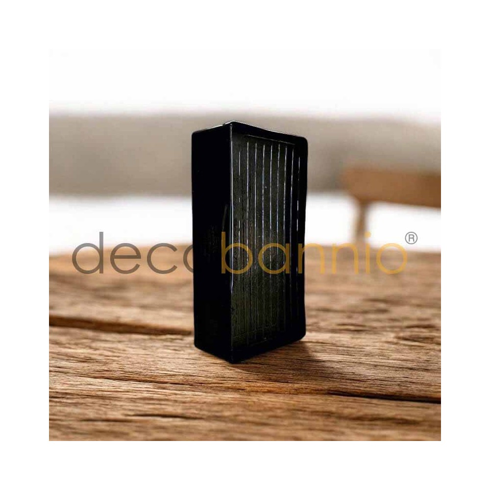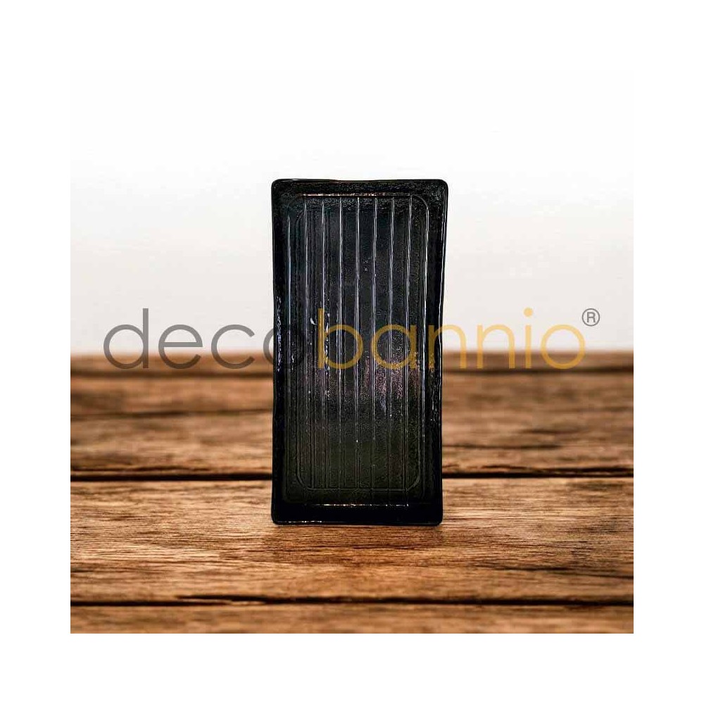 Este bloque de vidrio macizo en un distintivo color nero, con dimensiones de 20x10x5cm, evoca la apariencia elegante de un lingote. Sus líneas rectas y esquinas suavemente redondeadas le otorgan un diseño robusto pero refinado. En sus dos caras, presenta unas delicadas líneas verticales en relieve, que añaden un toque distintivo y moderno, diferenciándolo de otros modelos en el mercado.