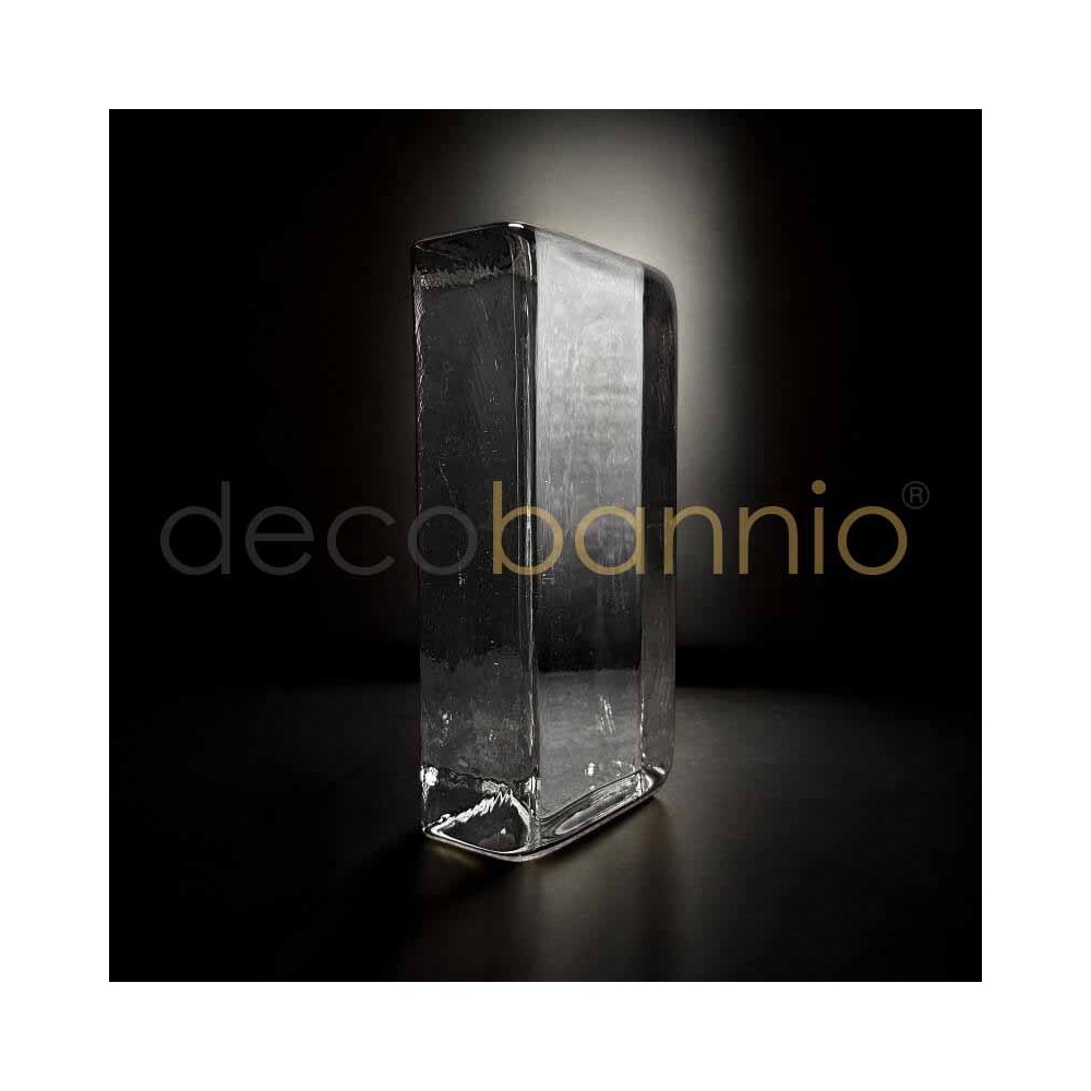 Este elegante bloque de vidrio macizo transparente-neutro, de medidas 20x10x5cm, es una pieza única que combina el arte artesanal con un diseño contemporáneo. Su forma rectangular recuerda a la de un lingote, con líneas limpias y esquinas suavemente redondeadas que aportan un toque moderno y refinado.
