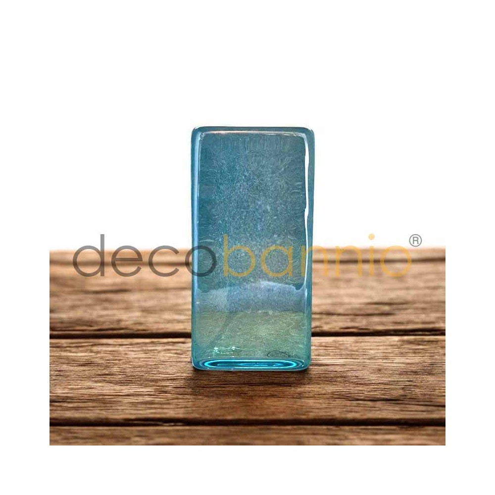 Este elegante bloque de vidrio macizo en color azzurro, de medidas 20x10x5cm, es una pieza única que combina el arte artesanal con un diseño contemporáneo. Su forma rectangular recuerda a la de un lingote, con líneas limpias y esquinas suavemente redondeadas que aportan un toque moderno y refinado.