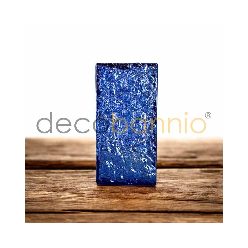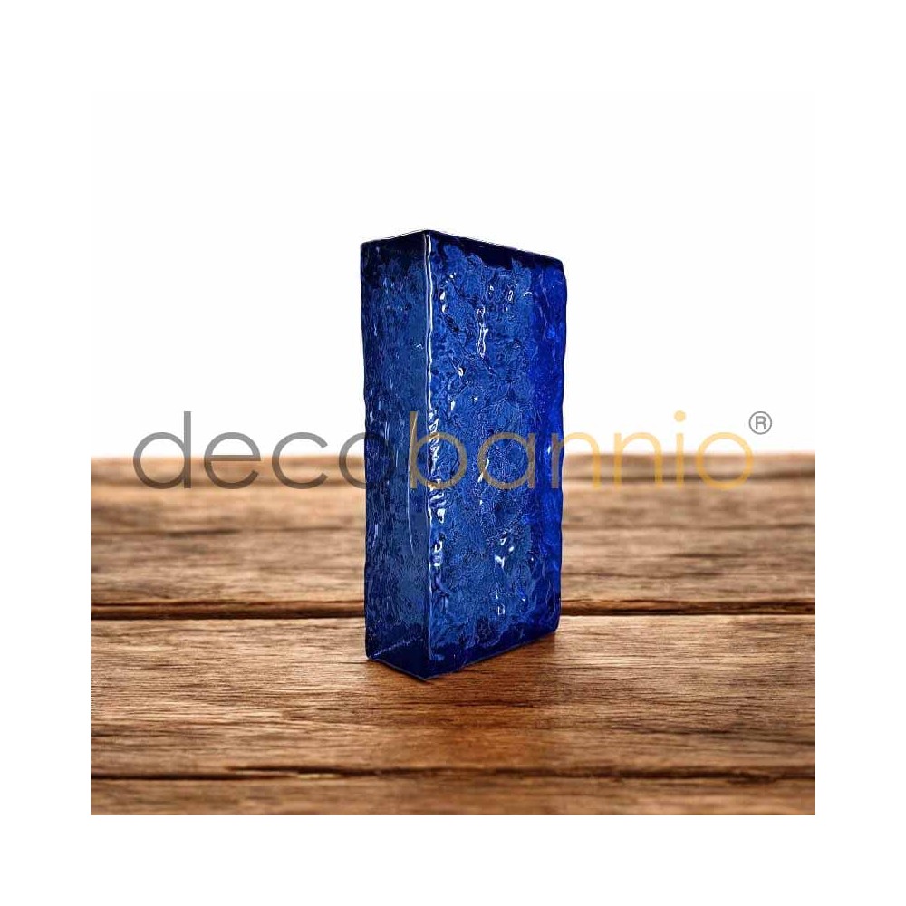 Ladrillo de vidrio macizo rectangular curvo onda frontal blu scuro. El ladrillo de vidrio es macizo, de aspecto rústico y artesano, laterales lisos para una correcta instalación en vertical. Su efecto onda modifica la visión a través de el siendo un bloque indicado para espacios que requieren de privacidad.