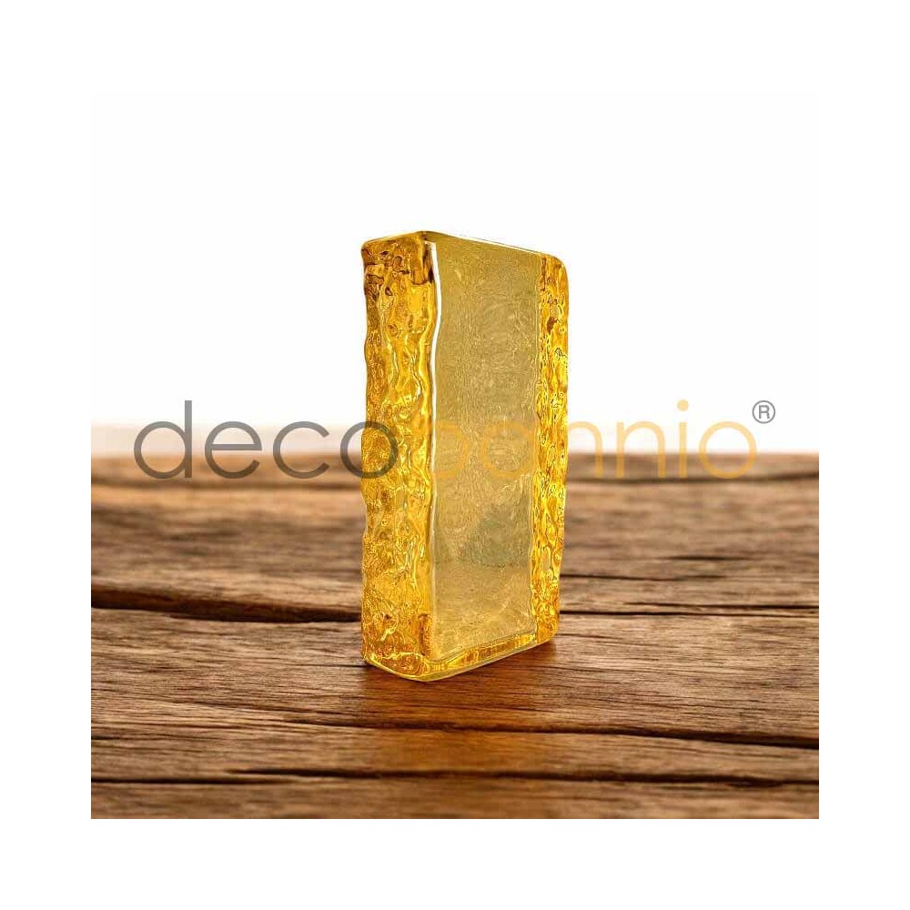 Este impresionante bloque de vidrio macizo en color giallo es una obra maestra de la artesanía, perfecto para aportar sofisticación y modernidad a cualquier proyecto arquitectónico o de diseño. Con unas dimensiones de 20x10x5cm y una forma que evoca a un lingote, este bloque destaca por sus líneas limpias y esquinas suavemente redondeadas, proporcionando una estética refinada y contemporánea.