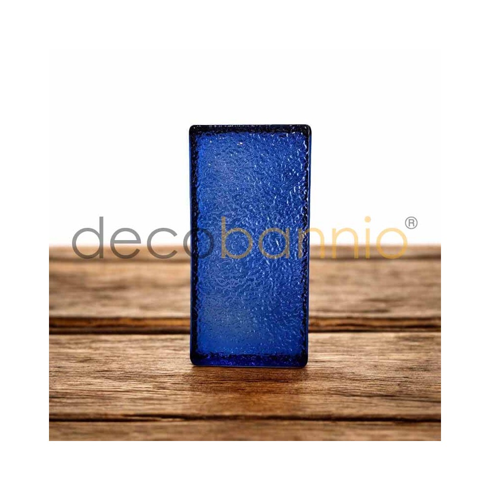 Ladrillo de vidrio macizo rectangular curvo puntegiatto blu scuro 20x10x5cm. Bloque de vidrio transparente y de líneas limpias y elegantes. Efecto punteado en sus lados y en su cara trasera. Apto para zonas donde la privacidad empieza a ser importante.