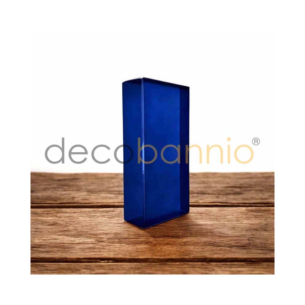 Ladrillo de vidrio macizo rectangular recto satinado blu scuro 20x10x5cm. Bloque macizo con sus lados y aristas totalmente rectos. El bloque es totalmente satinado en todos sus lados y se puede instalar con adhesivo invisible.