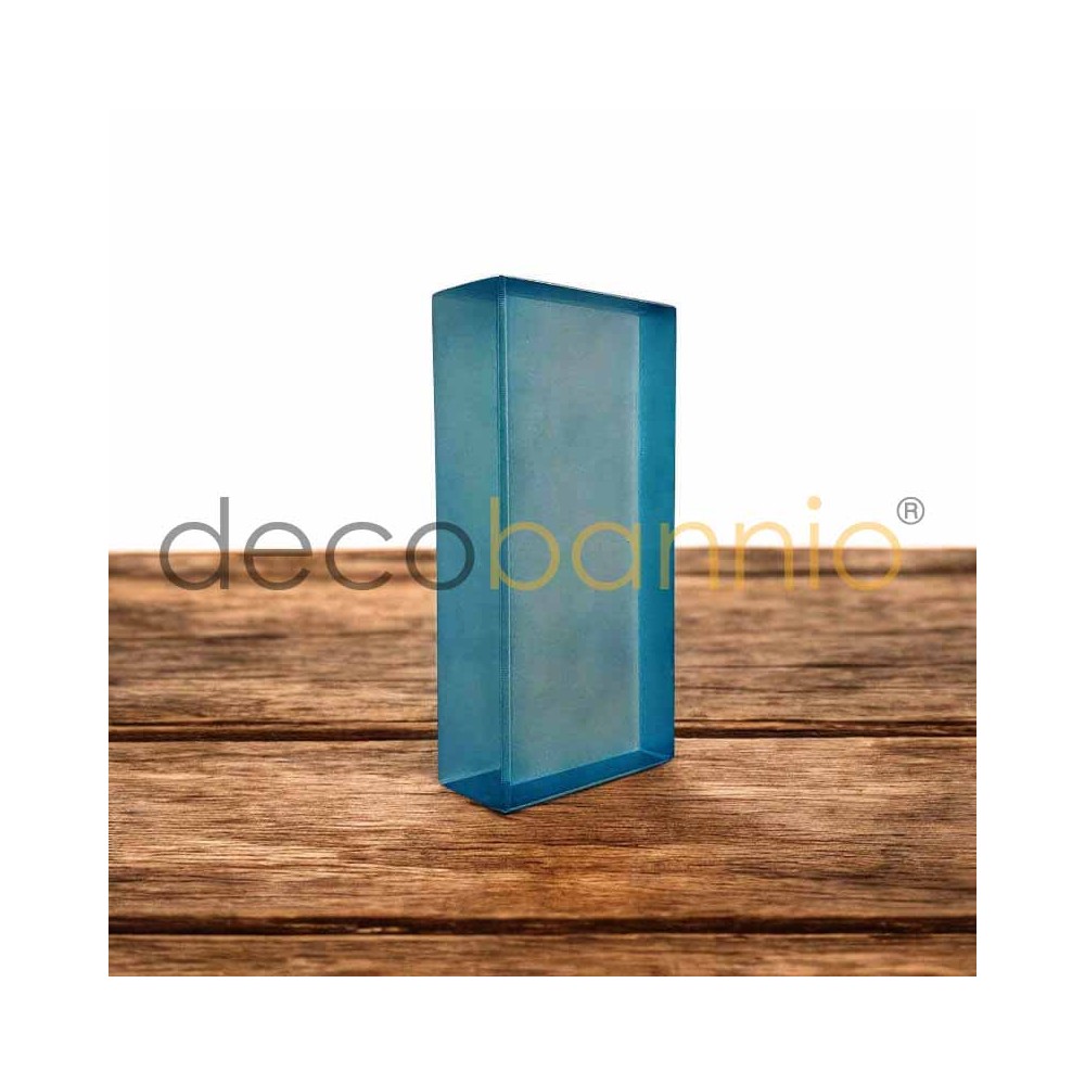 Ladrillo de vidrio macizo rectangular recto satinado azzurro 20x10x5cm. Bloque macizo con sus lados y aristas totalmente rectos. El bloque es totalmente satinado en todos sus lados y se puede instalar con adhesivo invisible.