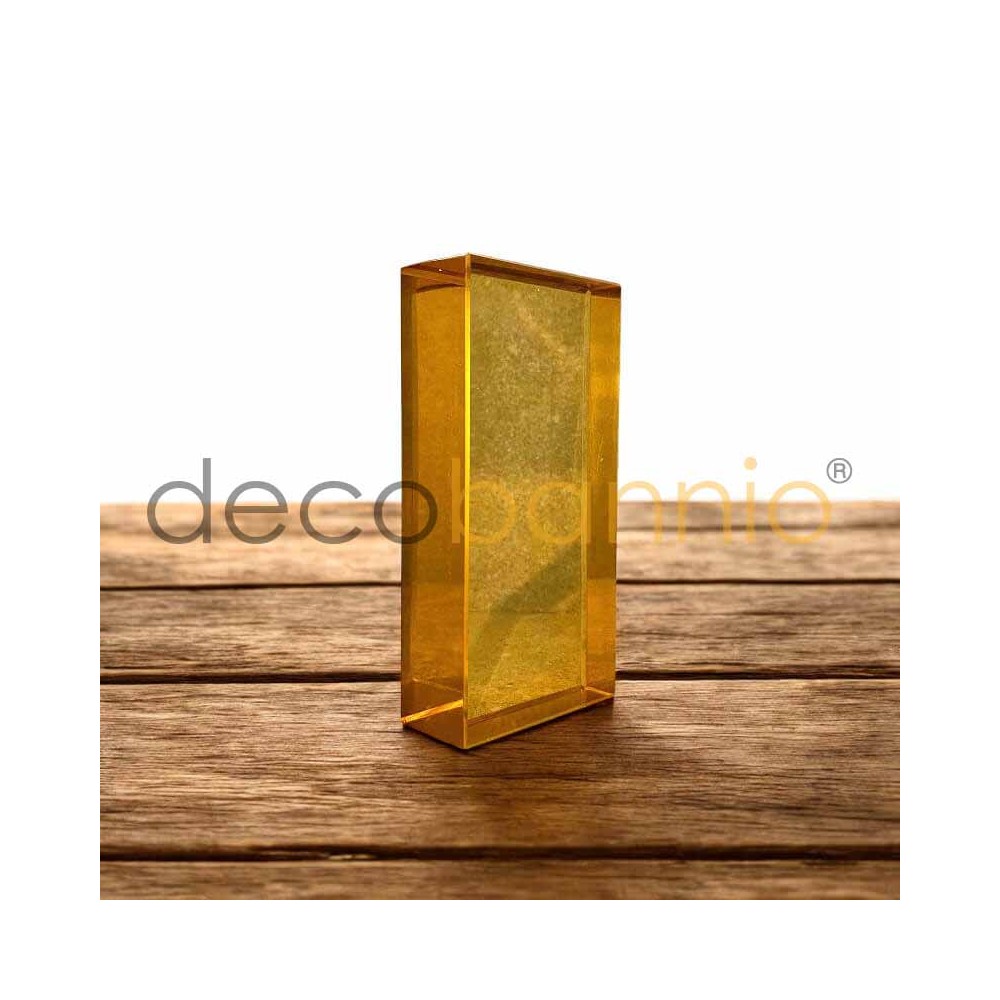 Ladrillo de vidrio macizo rectangular recto transparente giallo 20x10x5cm. Bloque macizo con sus lados y aristas totalmente rectos. El bloque es totalmente transparente en todos sus lados y se puede instalar con adhesivo invisible.