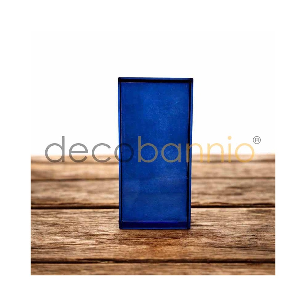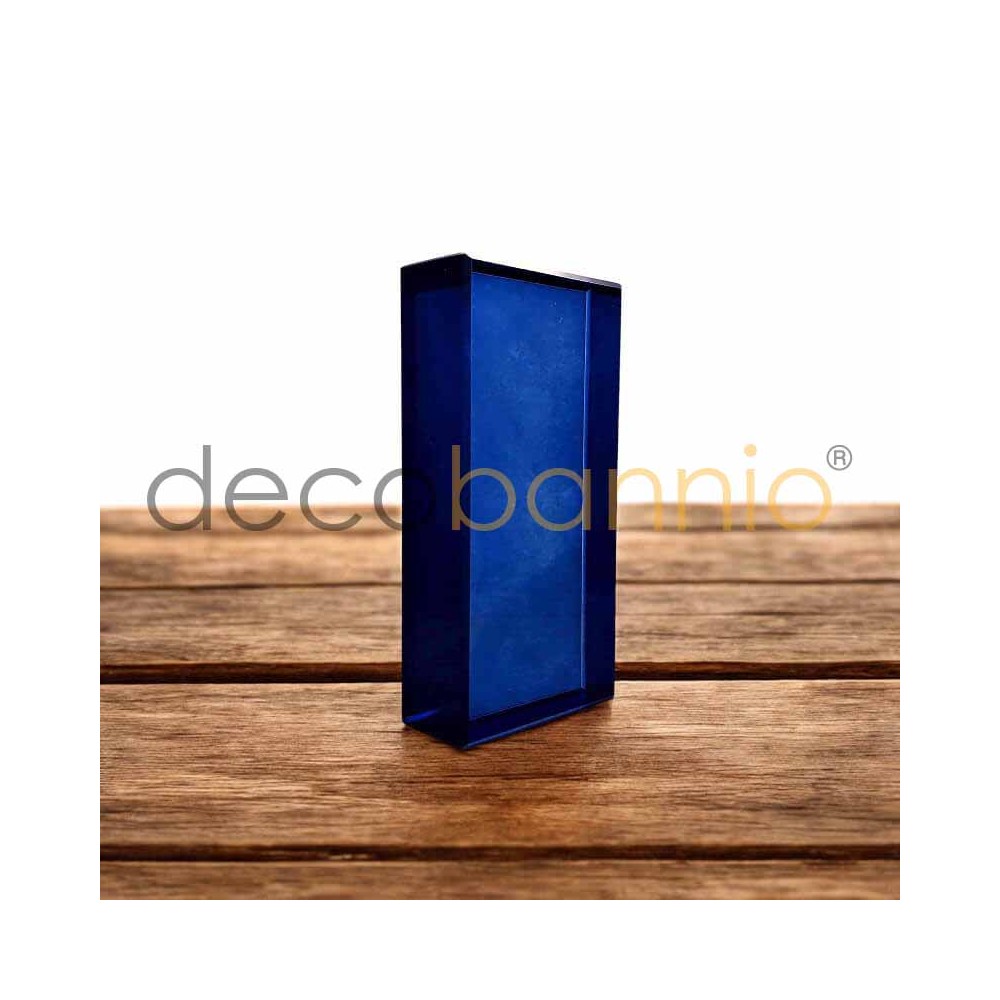Ladrillo de vidrio macizo rectangular recto transparente blu scuro 20x10x5cm. Bloque macizo con sus lados y aristas totalmente rectos. El bloque es totalmente transparente en todos sus lados y se puede instalar con adhesivo invisible.