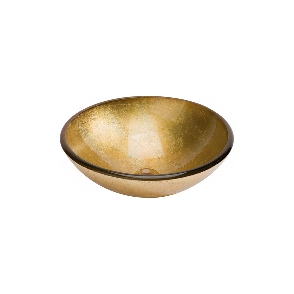 Impresionante lavabo de cristal con láminas de pan de oro.