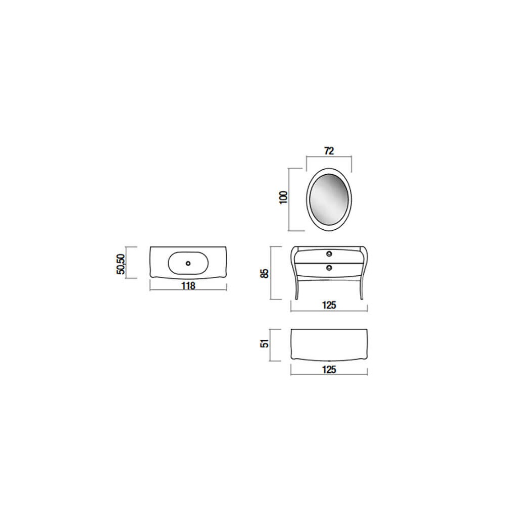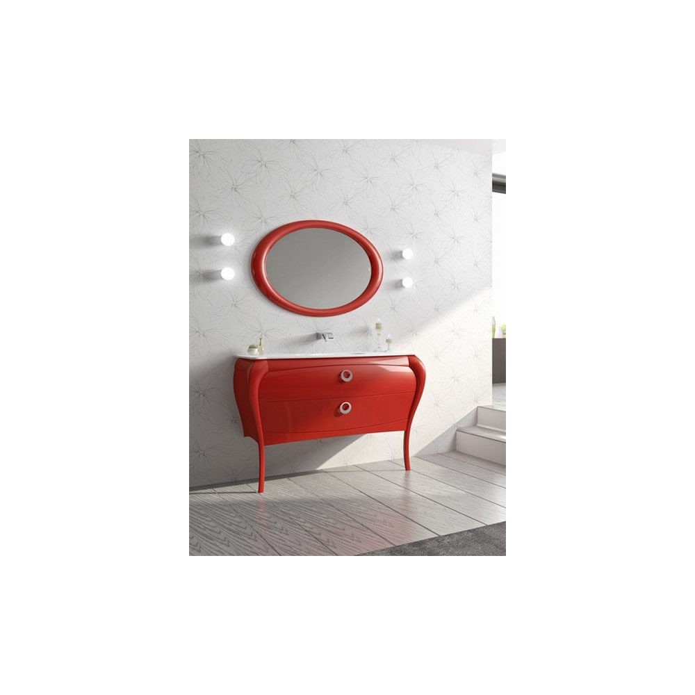 Aunque el precio incluye sólo la estructura y el lavabo, este conjunto le proporciona la posibilidad de añadirle un espejo Paulina con espesor en el marca de 5 cm y de medida 72x100 cm en acabado passión brillo y 4 lámparas halógenas Luzzy de 40W en acabado cromo brillo atornilladas a la pared.